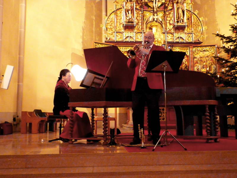 Ein Konzertbesucher hat mir freundlicherweise ein Foto zur Verfügung gestellt. Sie sehen mich, Renate Steiner, am Cembalo und Peter Rey an der Trompete: